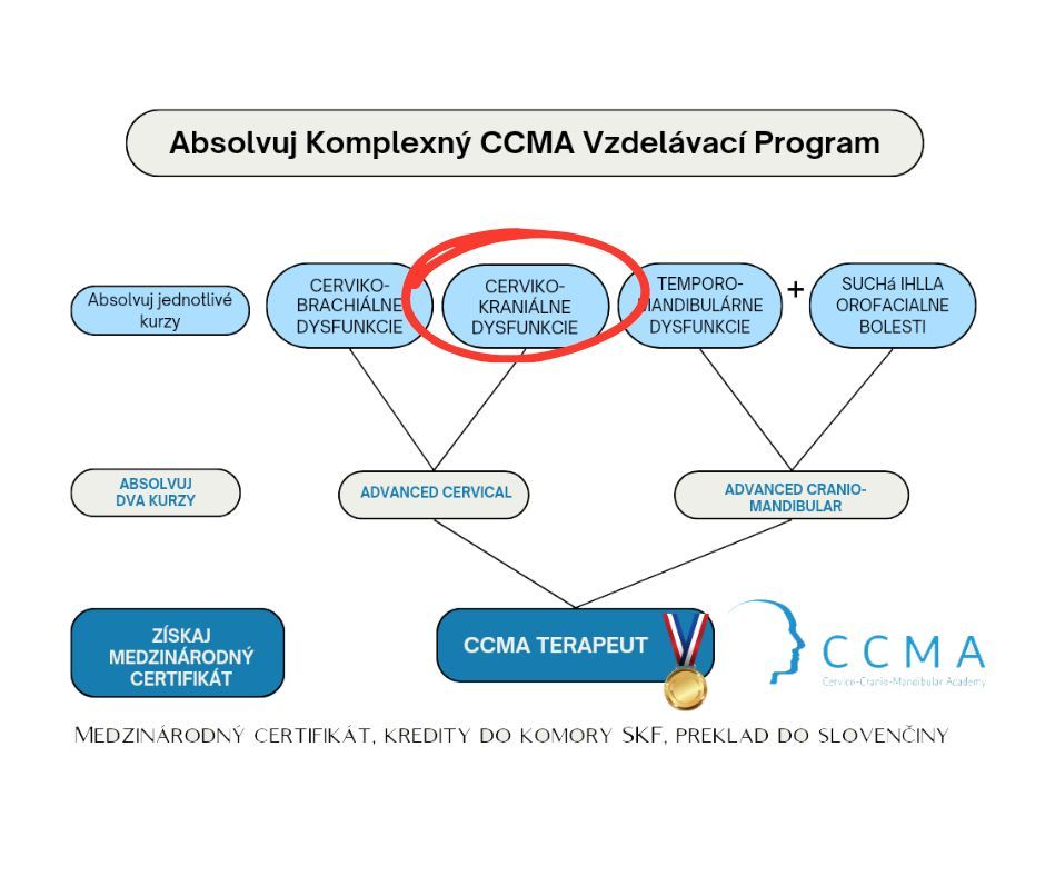 Kurzy sú súčasťou Komplexného CCMA Vzdelávacieho Programu. Tieto Kurzy pre fyzioterapeutov poskytujú komplexný súbor vedomosti a techniky pre liečby oblasti hlavy a krku. Každý kurz je samostatný, kurzy sa dajú absolvovať v ľubovoľnom poradí.