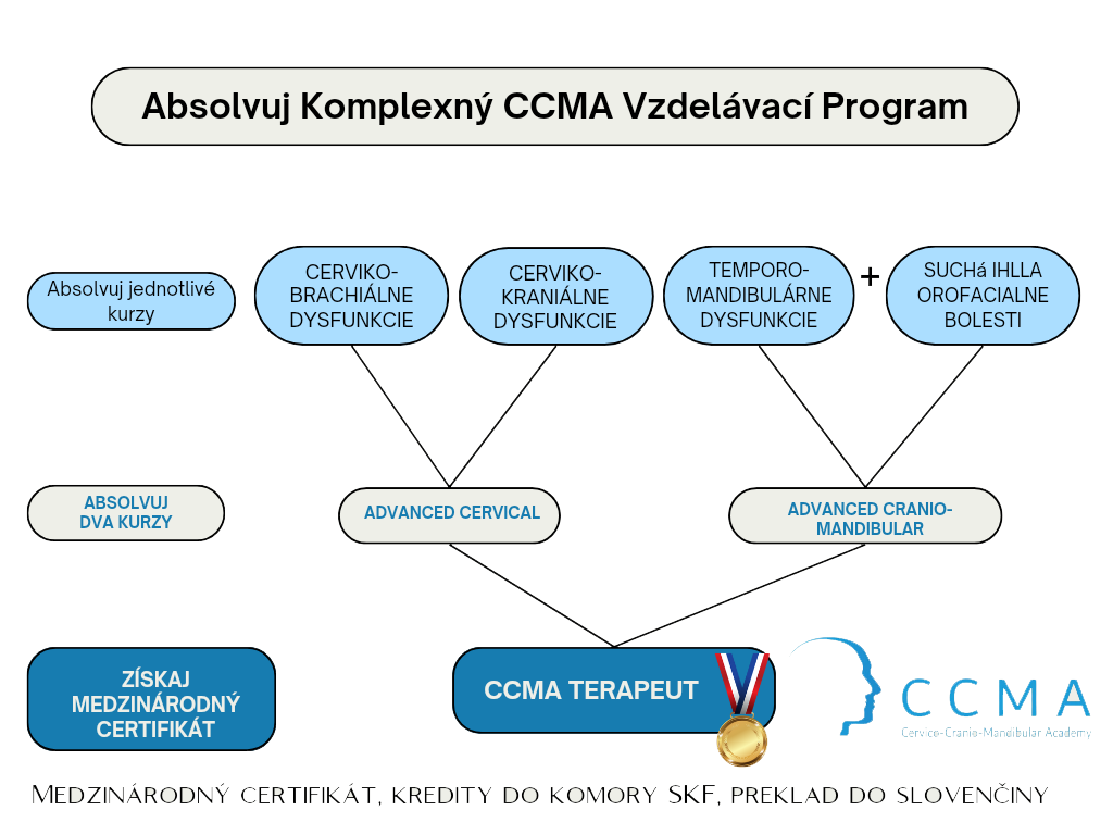 Po absolvovaní kurzov Kraniocervikálne dysfunkcie a Cerviko-brachiálne dysfunkcie môžu získať prístup na pokročilý kurz Advanced Cervical. Po úspešnom ukončení všetkých šiestich kurzov účastník získa medzinárodný certifikát a osvedčenie od CCMA. Kurzy je možné absolvovať aj samostatne a v ľubovoľnom poradí.