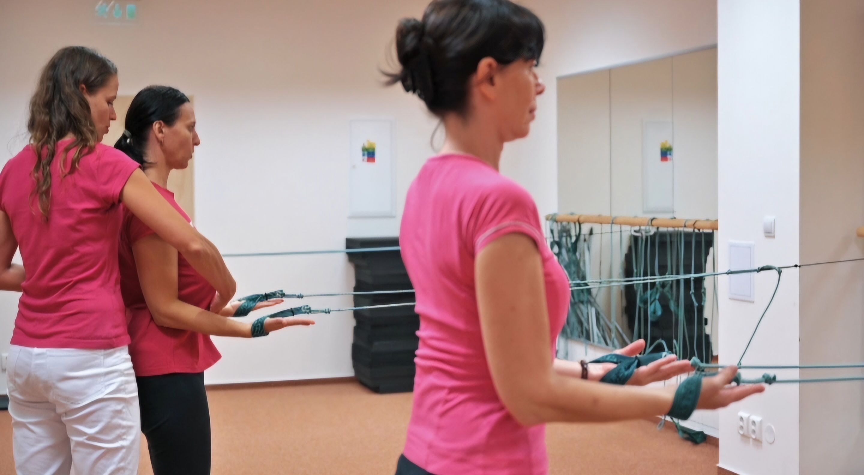 Cvičí sa pomalým tempom s dôrazom na správne prevedenie cvikov, naboso. Všetky pomôcky na cvičenie sú cvičiacim k dispozícii.